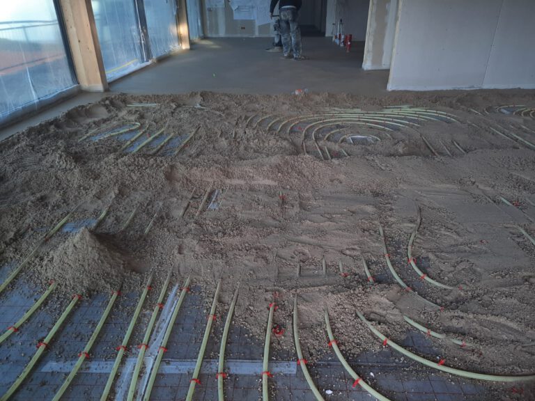 Der Innenausbau schreitet weiter voran. Fußbodenheizung und Estrich werden momentan verlegt (Bild 1).